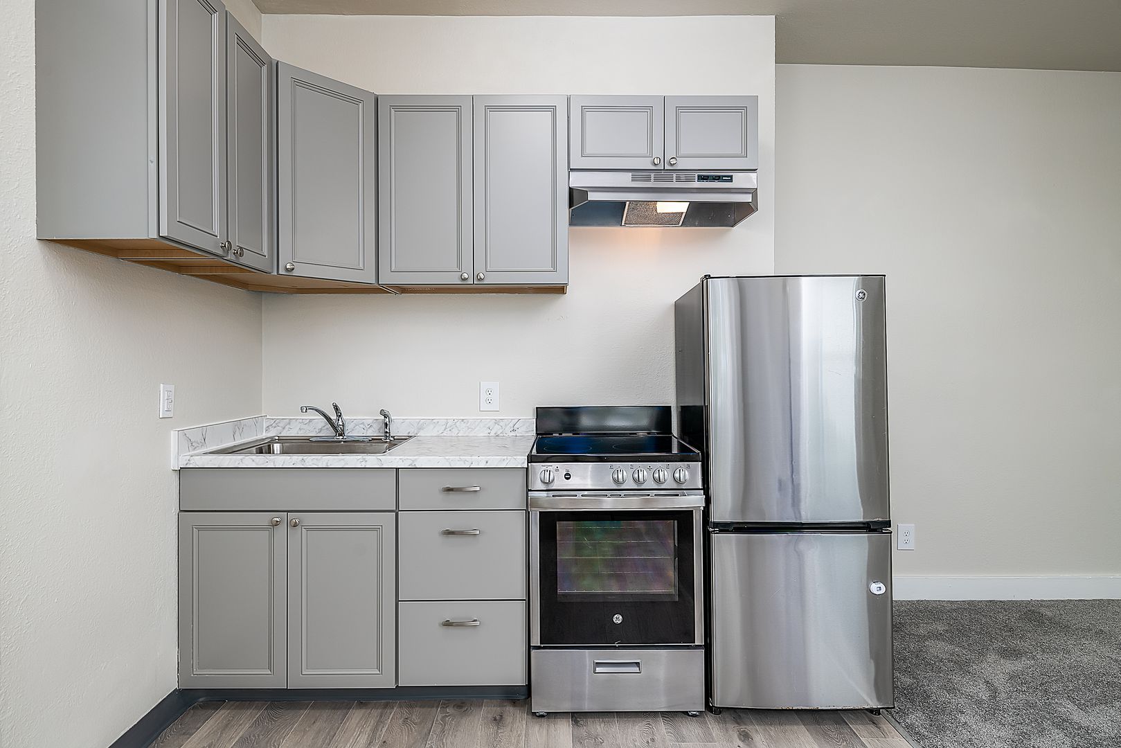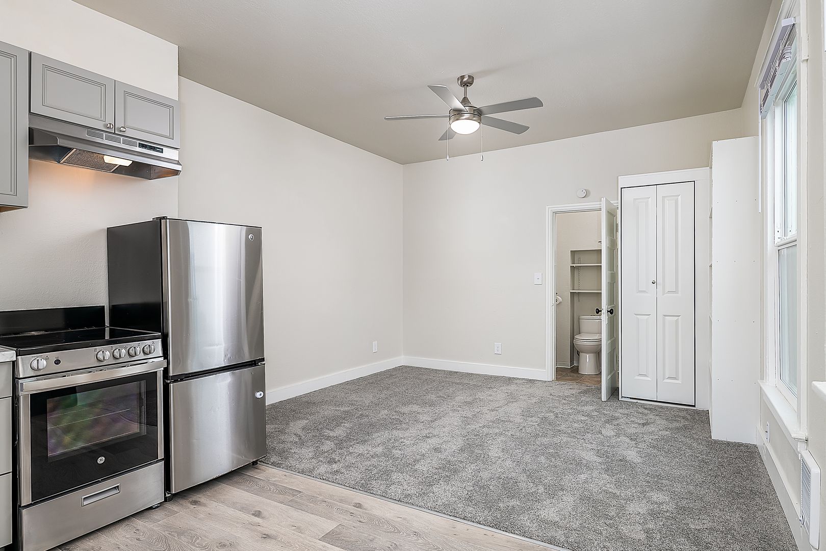 This cozy studio apartment has its own private entrance. Your new home has a brand new kitchen with stylish cabinets, brand new stainless steel appliances, modern brand new hardwood floors, plush carpet, and huge brilliantly bright windows.