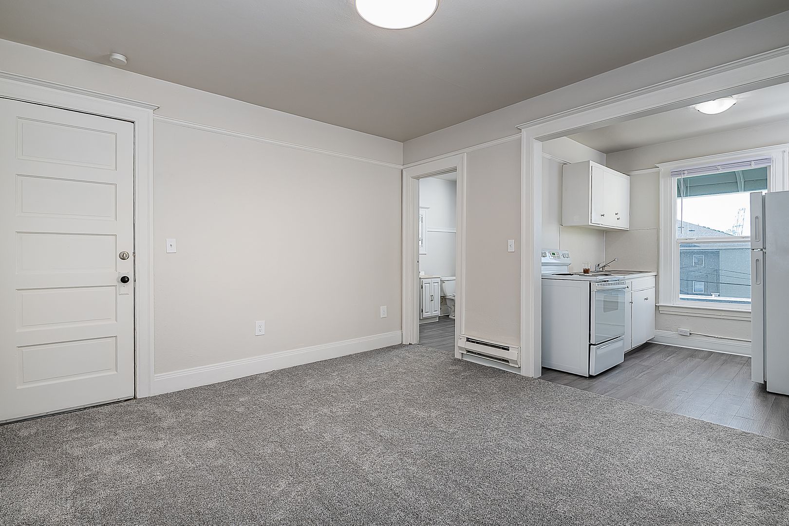 Come make yourself at home in a small apartment complex located just blocks from Providence Hospital and the heart of downtown Everett. The apartment is on a rural North Everett street and ready for you to make it your own. Corner studio unit with a 3/4 bath in a quiet building. Unit features all new windows, flooring, and paint. The view can't be beat! The Apartment has plenty of on street parking. Unit has shared washer & dryer in a locked area on the property.